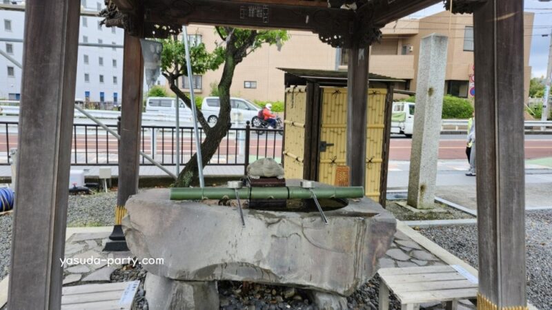 賽銭箱や天水桶、提灯などにも源氏の家紋があしらわれています。