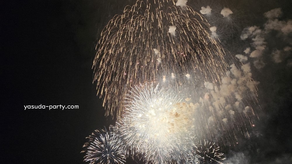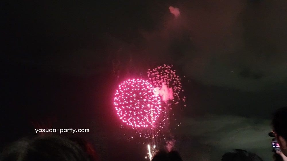 大曲みたいに広く打ち上げるというより、打ち上げ場所は一か所だったので同じところから沢山打ちあがる感じででした。