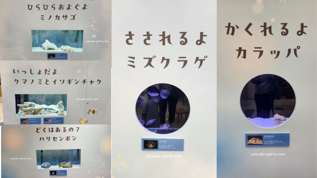 9日は水槽展示は見るだけでしたが、19日は丁度餌やりを解説していて、小さい水槽にキッズが群がっていて可愛かったです。