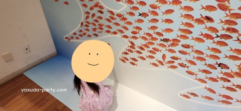 その他、海の生き物に関する絵本と読書コーナーがあり自由に使えたり、海洋生物のぬいぐるみと一緒に撮れるフォトスポットもありました。