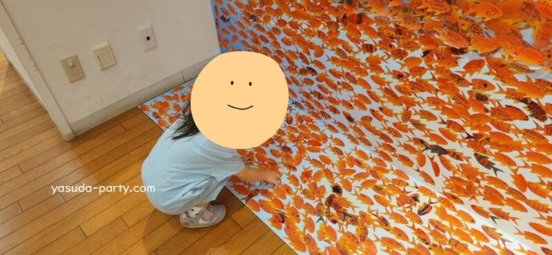 おおきなボードに小さな魚のシールを貼って大きな魚を作ろう!!みたいなやつにも参加。