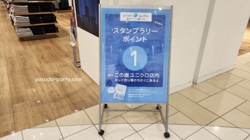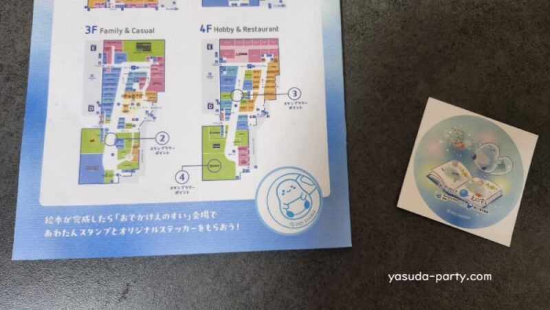 モールは4階まであるので、たった4つのスタンプを探すは大変そうでうすが、台紙の裏にマップとスタンプラリーポイントが載っているので簡単です。
